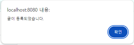 - window.location.href = '/' : 글 등록이성공하면 메인 페이지(/)로 이동