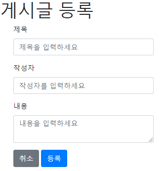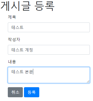 이때 게시글 등록 화면에 등록 버튼은 기능이 없다.