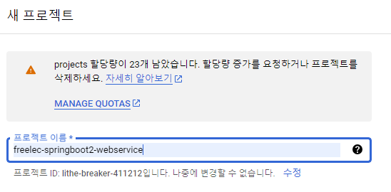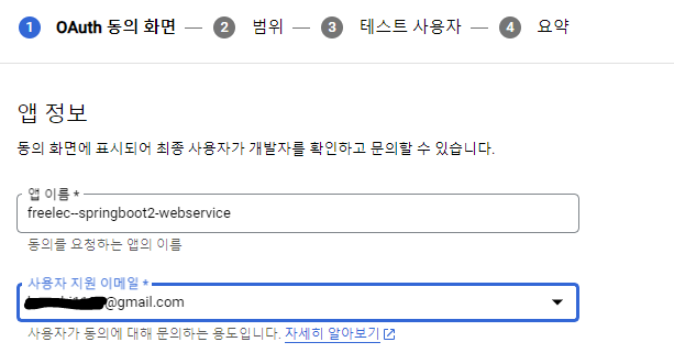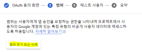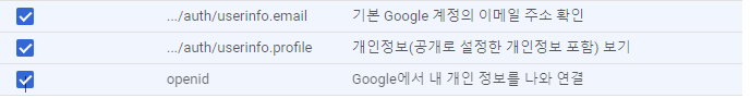 - Google API 범위 : 이번에 등록할 구글 서비스에서 사용할 범위 목록