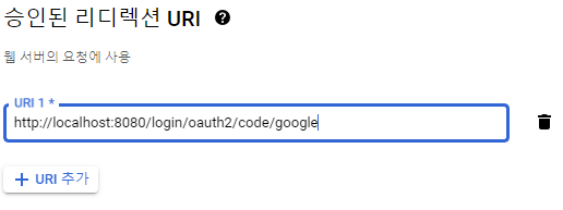 - 승인된 리디렉션 URI