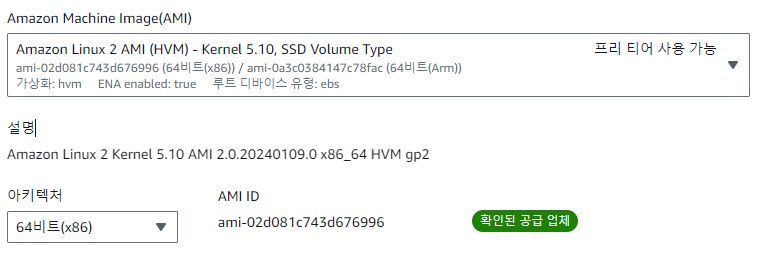 AMI : EC2 인스턴스를 시작하는 데 필요한 정보를 이미지로 만들어 둔것으로, 인스턴스라는 가상머신에 운영체제 등을 설치할 수 있게 구워 넣은 이미지로 생각하면 된다.