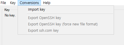 putty는 pem키로 사용이 안 되며, pem키를 ppk 파일로 변환을 해야한다.