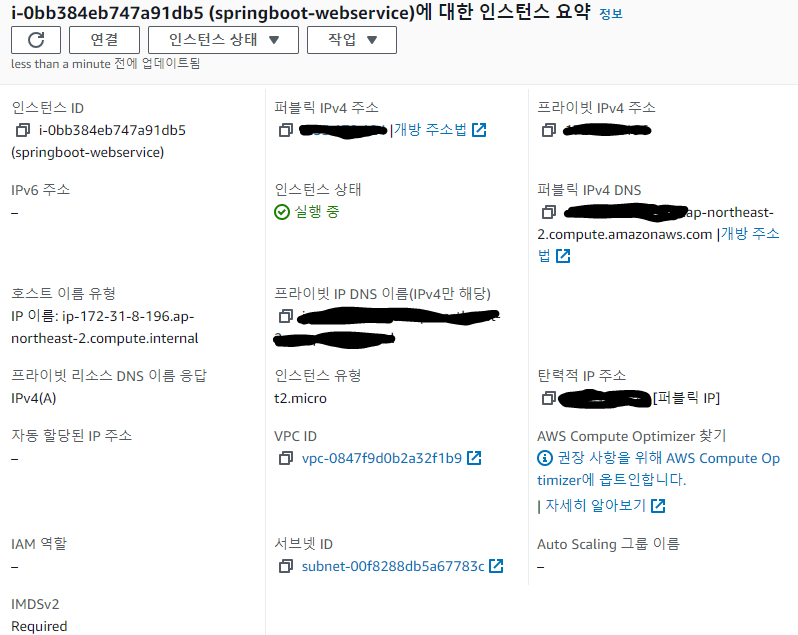 방금 생성한 EIP는 생성하고 EC2 서버에 연결하지 않으면 비용이 발생하기 때문에 무조건 EC2에 바로 연결해야 하며 더는 사용할 인스턴스가 없을 때도 EIP를 삭제해야 한다.