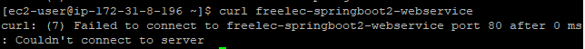 80 포트로 접근이 안된다는 에러가 발생한다. 이는 아직 80포트로 실행된 서비스가 없음을 의미하기에 curl 호스트 이름으로 실행은 잘되었다는 의미이다.