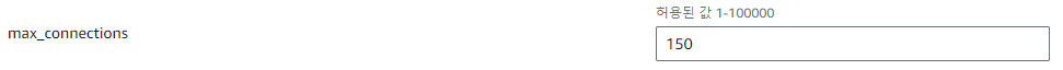 RDS의 Max Connection은 인스턴스 사양에 따라 자동으로 정해지는데, 현재 프리티어 사양에서는 약 60개의 커넥션만 가능하기에 좀더 넉넉하게 설정한다.